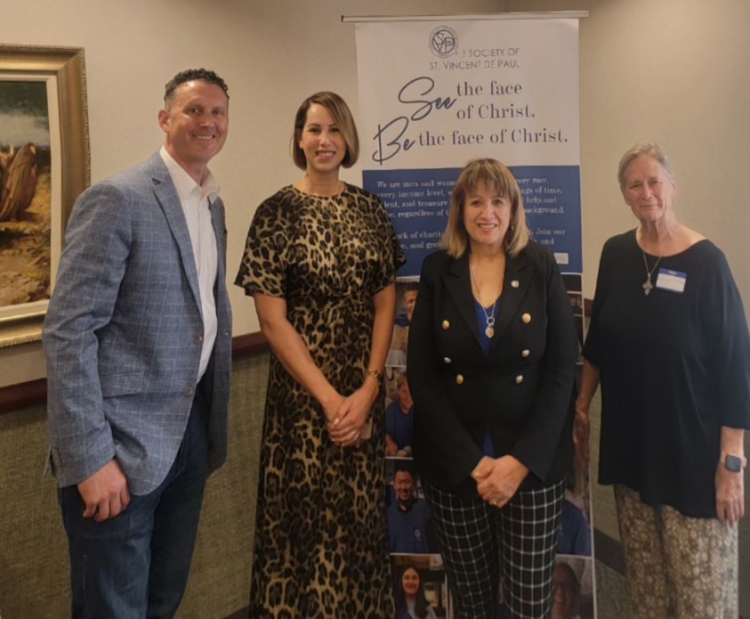 We were honored to partner with The Church of Jesus Christ of Latter-day Saints, which hosted the event. Attendees from local churches included clergy and/or staff from Zion Lutheran Church, Helotes Hills United Methodist Church, Bethel Covenant Assembly of God Church, The Church of Jesus Christ of Latter-day Saints, Forest Hills Presbyterian Church and Our Lady of Guadalupe Catholic Church. Guest speakers included Pastor Brad Pierson, Bishop Johnnie Davis, Meg Rulewicz and Brennen Ricks from The Church of Jesus Christ of Latter-day Saints, Eric Cooper – President and CEO from the SA Food Bank, James and Shellie Malik – SVdP Helotes Food Pantry Managers, Ryan Loyd – Marketing Manager for SA Ready to Work, Sabrina McGowan – Council Member for the City of Helotes. The Master of Ceremonies was Catherine McCoy, SVdP Summit Chair and 2nd Vice President and Co-Chair Roxana Vargas, SVdP District Spiritual Advisor.